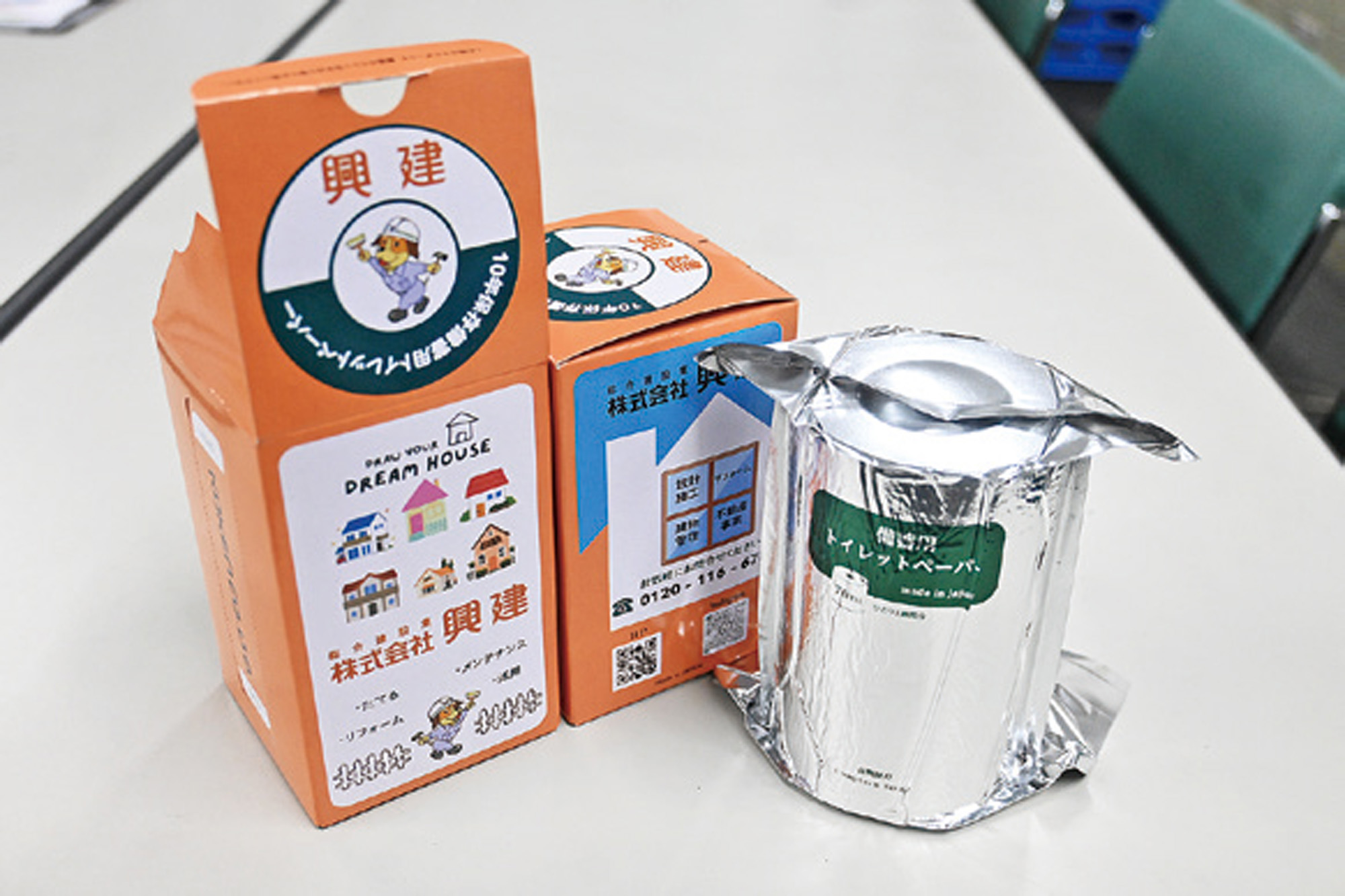 参加賞として当社制作の防災グッズ「10年保証備蓄用トイレットペーパー」を配布しました。